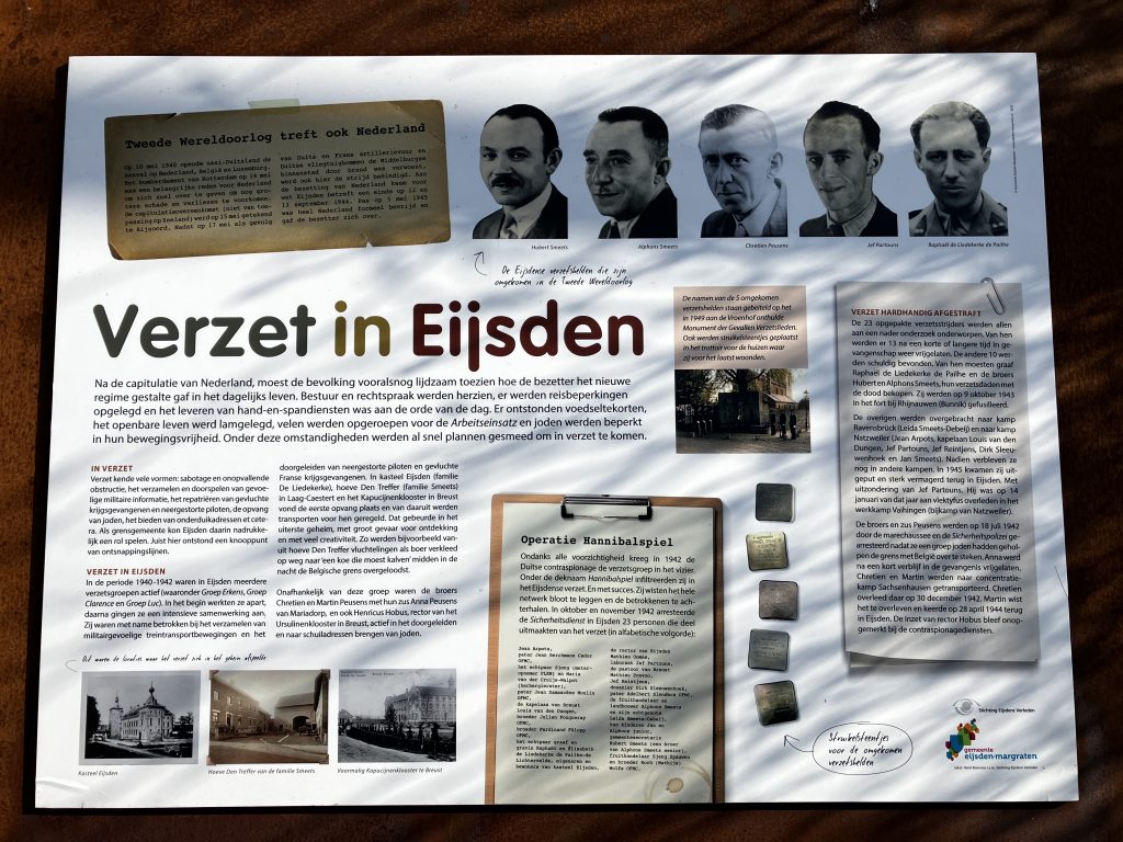 In de periode 1940-1942 waren in Eijsden meerdere verzetsgroepen actief (waaronder Groep Erkens, Groep Clarence en Groep Luc). In het begin werkten ze apart, nadien werkten ze intensief samen. Zij waren met name betrokken bij het verzamelen van militairgevoelige treintransportbewegingen en het doorgeleiden van neergestorte piloten en gevluchte Franse krijgsgevangenen. In kasteel Eijsden (familie De Liedekerke), hoeve Den Treffer (familie Smeets) in Laag-Caestert en het Kapucijnenklooster in Breust vond de eerste opvang plaats en van daaruit werden transporten voor hen geregeld. Dat ging onder uiterste geheimhouding en met groot gevaar voor ontdekking. Desondanks kreeg in 1942 de Duitse contraspionage de verzetsgroep in het vizier. Onder de deknaam Hannibalspiel infiltreerden zij in het Eijsdense verzet. En met succes. Zij wisten het hele netwerk bloot te leggen en de betrokkenen te achterhalen. In oktober en november 1942 arresteerde de Sicherheitsdienst in Eijsden 23 personen die deel uitmaakten van het verzet (alfabetische volgorde): Jean Arpots, pater Jean Berchmans Cador OFMC, het echtpaar Sjeng (meteropnemer PLEM) en Maria van der Cruijs-Walpot (herbergierstier), pater Jean Damacène Moulin OFMC, de kapelaan van Breust Louis van den Dungen, broeder Julien Fouqueray OFMC, broeder Ferdinand Fülopp OFMC, het echtpaar graaf en gravin Raphaël en Élisabeth de Liedekerke de Pailhe-de Lichtervelde, eigenaren en bewoners van kasteel Eijsden, de rector van Eijsden Mathieu Oomes, laborant Jef Partouns, de pastoor van Breust Mathieu Prevoo, Jef Reintjens, douanier Dirk Sleeuwenhoek, pater Adelbert Slenders OFMC, de fruithandelaar en landbouwer Alphons Smeets en zijn echtgenote Leida Smeets-Debeij, hun kinderen Jan en Alphons junior, gemeentesecretaris Hubert Smeets (een broer van Alphons Smeets senior), fruithandelaar Sjeng Spauwen en broeder Roch (Mathijs) Wolfs OFMC.