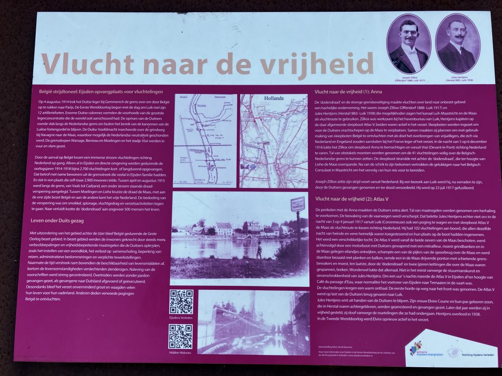 Door de aanval op België kwam een immense stroom vluchtelingen richting Nederland op gang. Alleen al in Eijsden en directe omgeving werden gedurende de oorlogsjaren 1914-1918 bijna 2.700 vluchtelingen kort- of langdurend opgevangen. Dat betrof met name bewoners uit de grensstreek die veelal in Eijsden familie hadden. En dat in een plaats die zelf maar 2.900 inwoners telde. Tussen april en augustus 1915 werd langs de grens, van Vaals tot Cadzand, een onder stroom staande draad-versperring aangelegd. Tussen Moelingen en Lixhe kruiste de draad de Maas, met aan de ene zijde bezet België en aan de andere kant het vrije Nederland. De bedoeling van de versperring was om smokkel, spionage, vluchtgedrag en verzetsactiviteiten tegen te gaan. Naar verluidt kostte de ‘dodendraad’ aan ongeveer 500 mensen het leven.